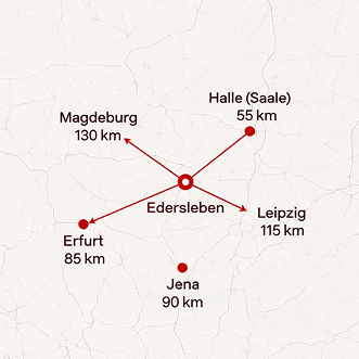 Unser Standort in Edersleben liegt ideal zwischen Halle, Magdeburg, Leipzig, Jena und Erfurt. Diese zentrale Lage ermöglicht uns, Fahrzeuge aus ganz Mitteldeutschland schnell und sicher anzunehmen und termingerecht fertigzustellen.